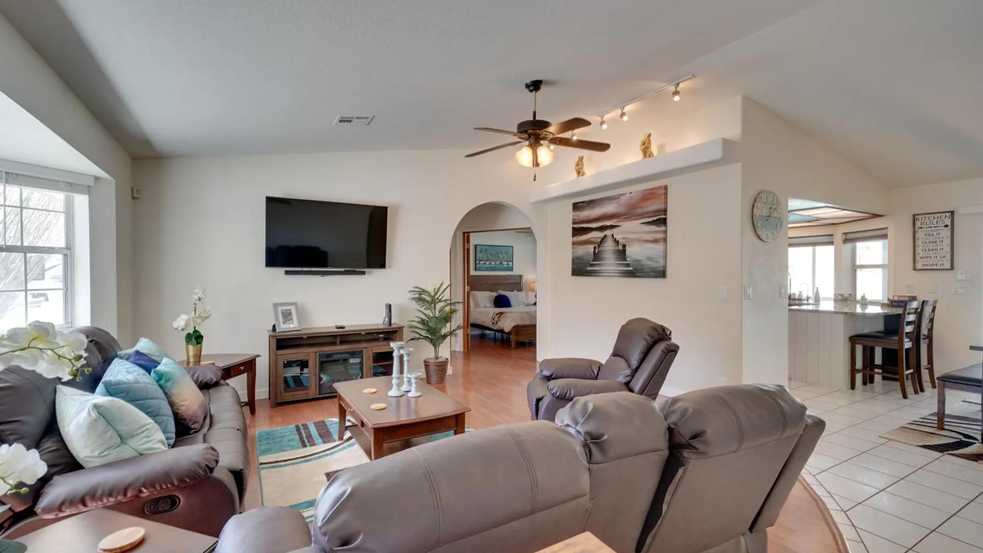 La Pool With Waterslide Lake Havasu City Home cuenta con una cocina bien equipada con un lavaplatos, una nevera y un horno para que tengas la oportunidad de cocinar. El aeropuerto Internacional de Bullhead City, el más cercano, está a 120 km de esta la propiedad.